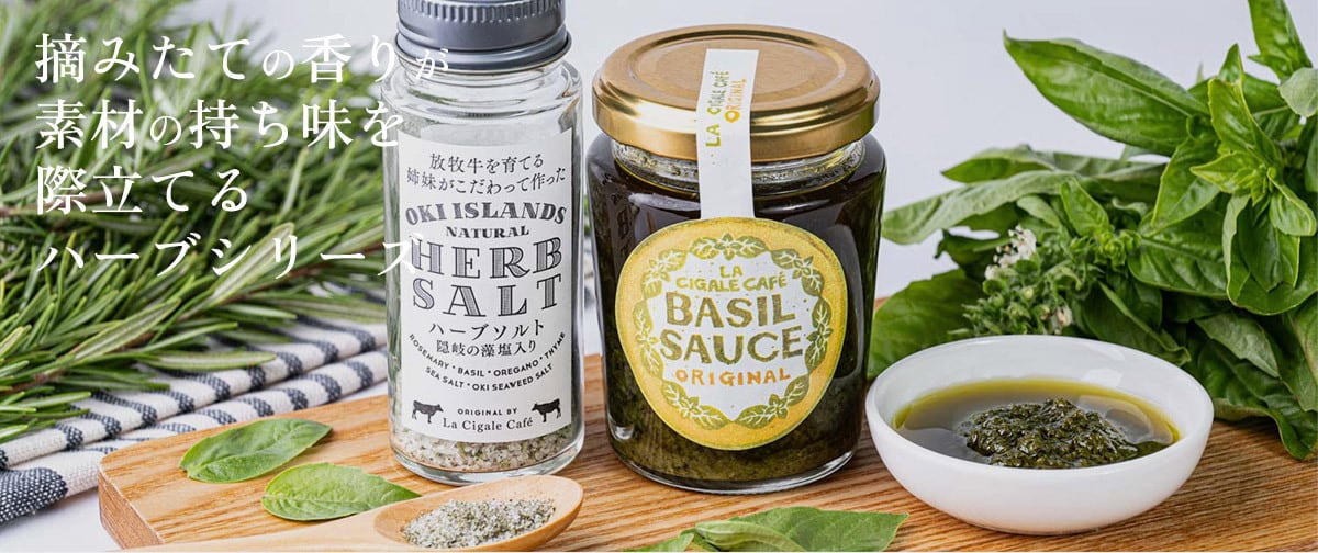 アグリおきのハーブ農園で栽培し、収穫したてのフレッシュバジルをたっぷり使ったバジルソースです。 レシピのルーツはわたしたちが農業留学したフランス・プロバンス地方。バジルの葉とニンニク、オリーブオイルで作るシンプルな味は、”Pistou”と呼ばれ、家庭の味として親しまれています。 収穫したてのフレッシュバジルの爽やかな香りと風味をはじめ、ニンニクの豊かなコク、オリーブオイルの果実香。ここに隠岐の藻塩を加えて味を膨らませた、フランスと隠岐の魅力が溶け込んだソースです。 パスタやバゲットはもちろん、ステーキや蒸し・焼き野菜へのディップ、野菜スープのアクセント、ピザソースに使ったりと使い方は自由自在。塩味控えめで素材の味を邪魔しないので、色々な料理のおいしさを際立てます。 毎年8〜11月の期間限定製造商品となります。