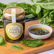 アグリおきのハーブ農園で栽培し、収穫したてのフレッシュバジルをたっぷり使ったバジルソースです。